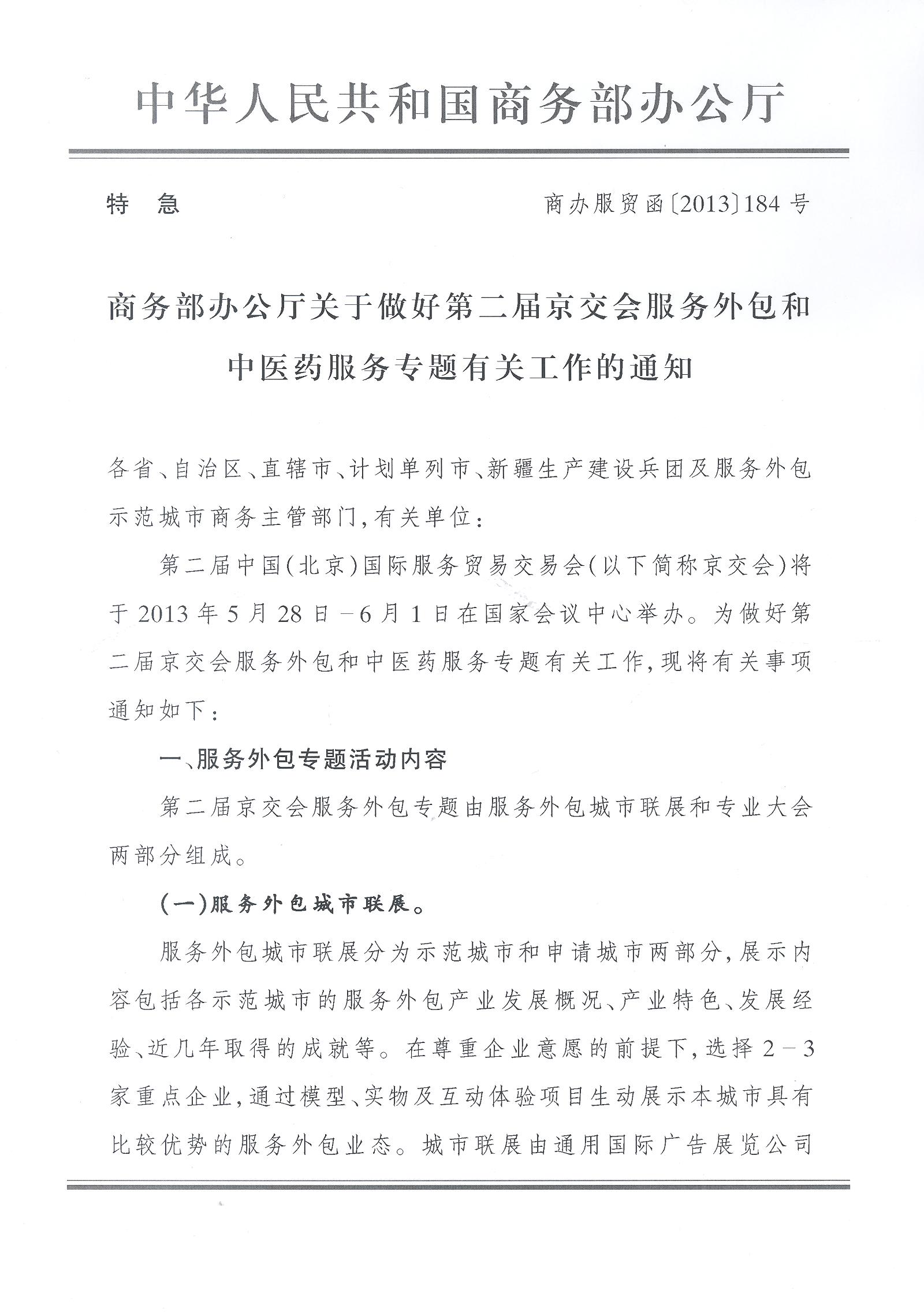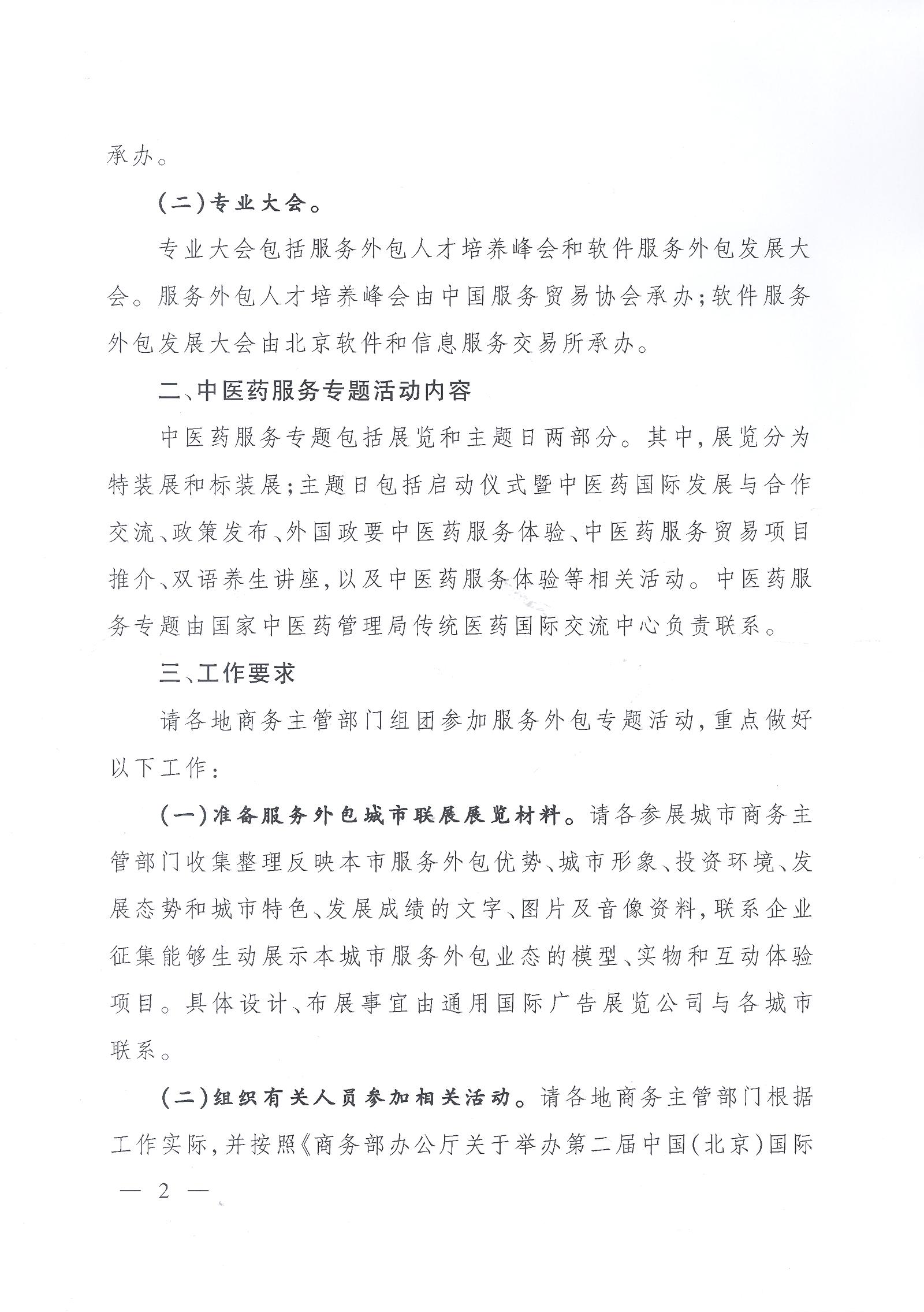 关于做好第二届京交会服务外包和中医药服务专题有关工作的通知