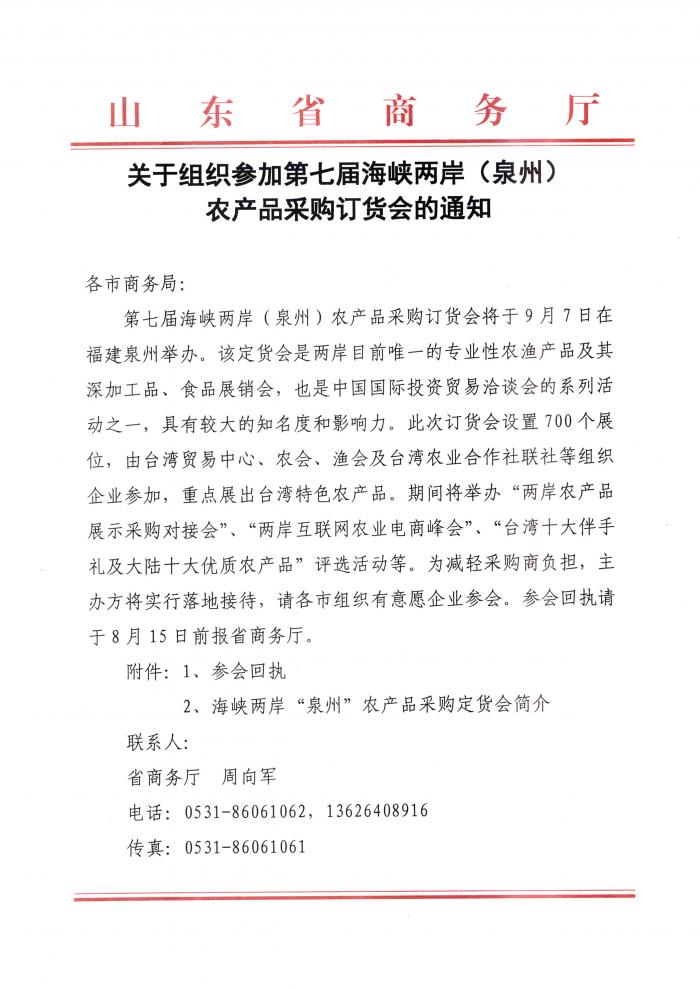 关于组织参加第七届海峡两岸(泉州)农产品采购订货会的通知