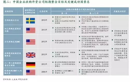 以下表格(图二)中罗列的是一些相对比较成功的中国企业海外并购后进入第一阶段的整合案例,其中总结了部分成功因素,可供参考: