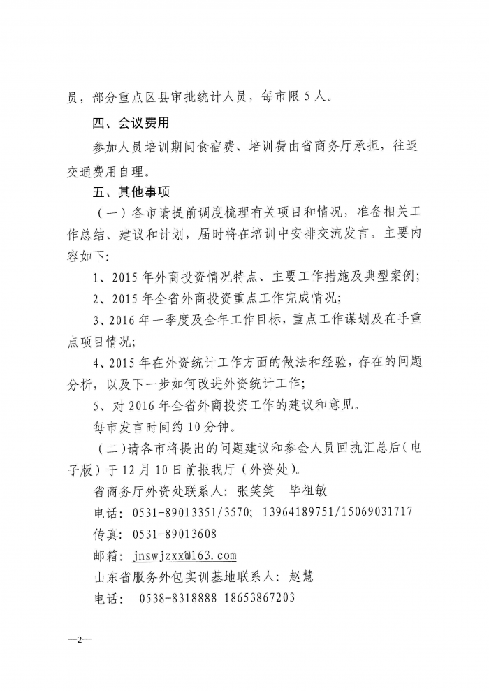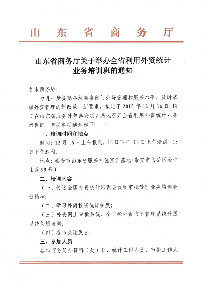 山东省商务厅关于举办全省利用外资统计业务培训班的通知