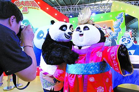 《功夫熊猫3》中的“阿宝”和女友“美美”。蒋迪雯摄