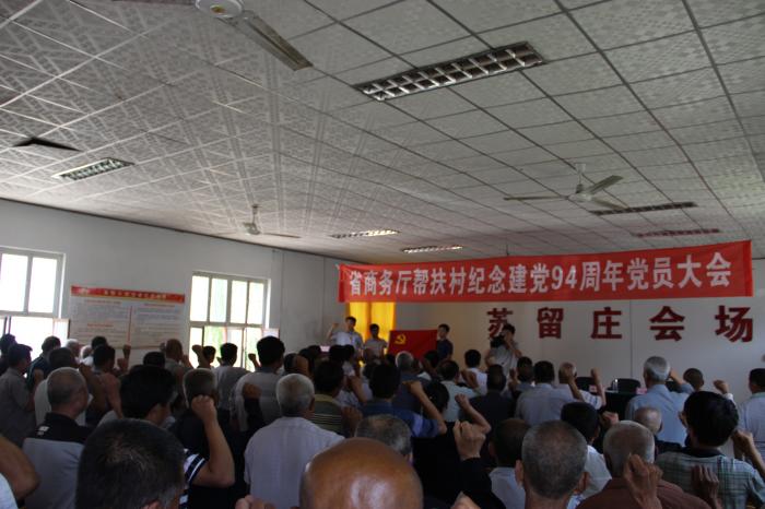 7月1日,省商务厅帮扶村纪念庆祝建党周年党员大会在夏津县苏留庄镇召开。夏津县委组织部副部长张俊臣、苏留庄镇党委书记韩以广、省商务厅第一书记工作组全体成员,苏留庄村、谢庄村、左堤村、小石堂村、于家仓村全体党员参加会议。会上,全体党员重温了入党誓词。张俊臣同志上了一堂生动的党课,围绕党员为什么参加政治生活,参加哪些政治生活,怎样做一名称职的党员,作了深入阐述。随后,五位村支书分别发言,就如何加强农村党组织建设,如何带领群众脱贫致富,如何开展农村工作,敞心扉,谈体会。第一书记工作组组长刘向锋结合驻村以来的工作体会,交流了如何增强党员身份认同感,通报了四个多月以来工作开展情况,并对发挥党员模范作用提出了希望。会后,第一书记工作组向五个村160名党员赠送了印有党徽和“纪念庆祝建党周年”字样的水杯和T恤。召开党员大会是第一书记抓党建的重要内容,通过上述活动,严肃了党内组织生活纪律,增强了党员的责任意识,激发了带领群众脱贫致富的热情。