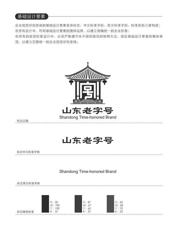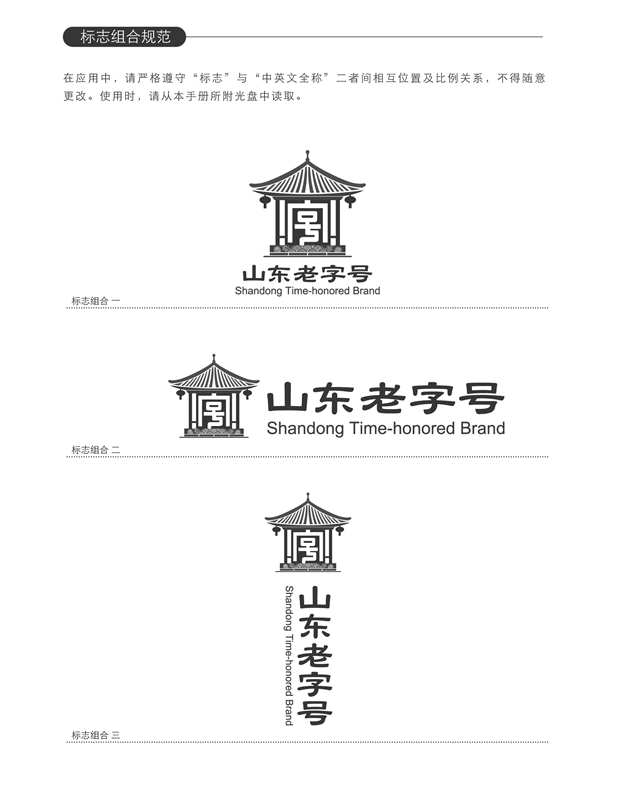 第五条 “山东老字号”标识的知识产权归属山东省商务厅,由标准图形和“山东老字号”中英文文字组成,图形可单独使用,也可与文字组合使用。标识设有标准色3色、标准组合3种供企业选用,推荐使用第一种“山东老字号”3色标识。