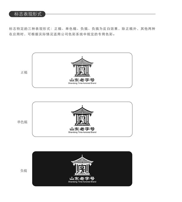 第七条 “山东老字号”标识在使用时必须根据规范式样,可按比例放大或缩小,但不得更改标识的比例关系和色相。