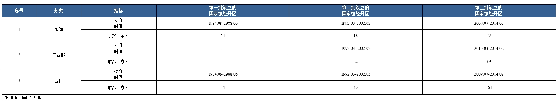 以国家经开区为例,继经济特区建设取得初步成功后,国务院自1984年起在12个沿海城市批准设立了首批14家国家级经开区。1992年,邓小平南巡之后,国家先后开放了一大批沿江、沿边和内陆省会的城市,国家级经开区也随之扩展到东北和中西部地区。伴随着我国对外开放向全方位、深层次、宽领域推进,国家级经开区开始延伸至全国内陆地市级城市和一些经济发展较好的县域城市。