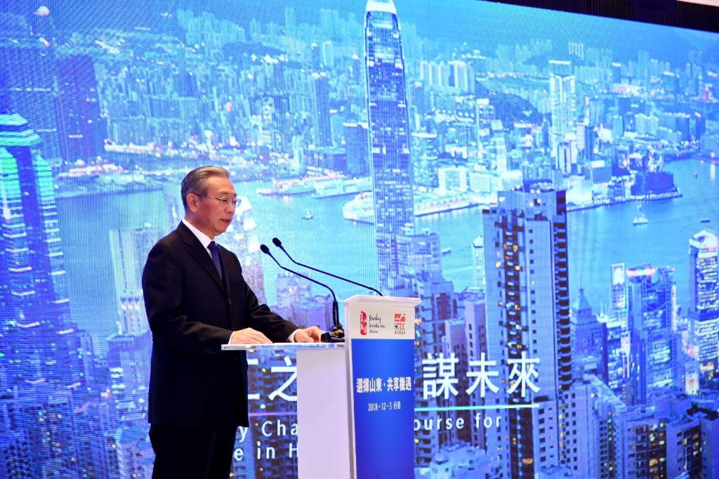 刘家义说,山东是一片饱含深情的沃土,是一个敢于创新的平台,是一个充满希望与活力的地方。我们正按照习近平总书记对山东工作的重要指示要求,奋力走在前列,全面开创新时代现代化强省建设新局面。新时代的山东,已经站在历史新起点,天时地利人和齐备,各项事业全面起势,到处都蕴藏着无限机遇。这些机遇是山东迈向高质量发展新征程上创造的,是山东人民对美好生活的新期待引发的,也是与每一位海内外投资者、创业者所共享的。山东机遇,在十强产业引领的新旧动能转换中,在870多万市场主体的创新创造里,在15.9万平方公里蔚蓝的海洋中,在7万多个村庄希望的田野上,在1亿多齐鲁儿女的巨大需求市场里,在与220多个国家和地区深度合作互利共赢中,在40年征程再出发、持续深化改革开放中。香港是国际知名的金融、贸易、航运中心,是全球最自由开放、最具竞争力的经济体和最具发展活力的地区之一。我们将进一步深化经贸、科技、金融、文化旅游等各领域合作,增进人才交流和青少年交往,完善合作机制,实现优势互补,更好推动鲁港合作再上新台阶。真诚欢迎香港各界朋友到山东观光考察、投资兴业,让我们伴随着祖国改革开放再出发的坚定步伐,在新时代续写鲁港合作新的辉煌。