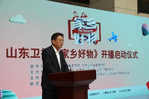 5月7日上午,由山东省商务厅、共青团山东省委、山东广播电视台共同主办的融媒直播助农项目《家乡好物》开播启动仪式在山东广播电视台举行,省商务厅副厅长王洪平出席仪式并致辞。