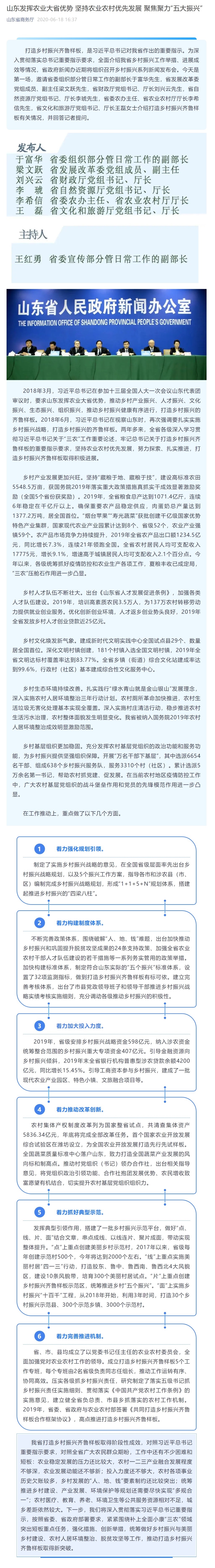 山东发挥农业大省优势 坚持农业农村优先发展 聚焦聚力“五大振兴”