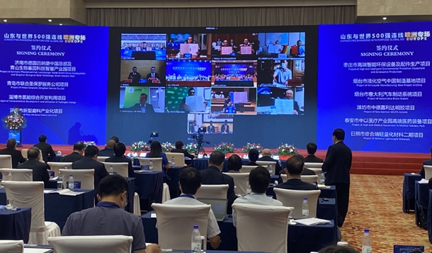 Covering sectors including high-end equipment manufacturing, new materials, modern finance, biotechnology and food manufacturing, the deals were signed at the Europe Special of the online serial event Connecting Shandong with Fortune Global 500.
