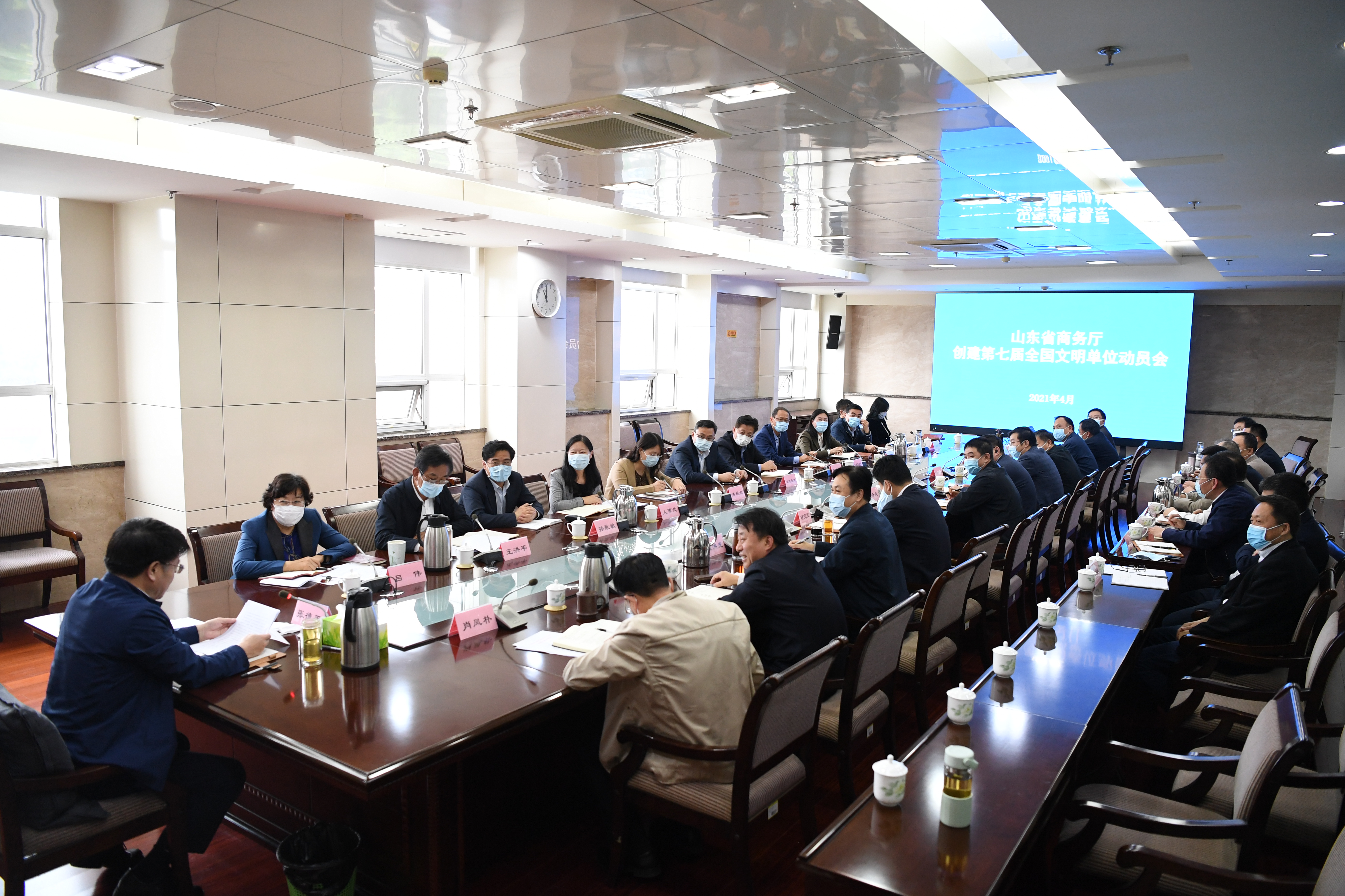 4月22日,省商务厅召开创建第七届全国文明单位动员会议,学习传达省直文明办关于做好全国文明单位申报工作的通知精神,研究部署创建第七届全国文明单位工作,安排近期创建工作。省商务厅厅长、党组书记张德平主持会议并讲话。