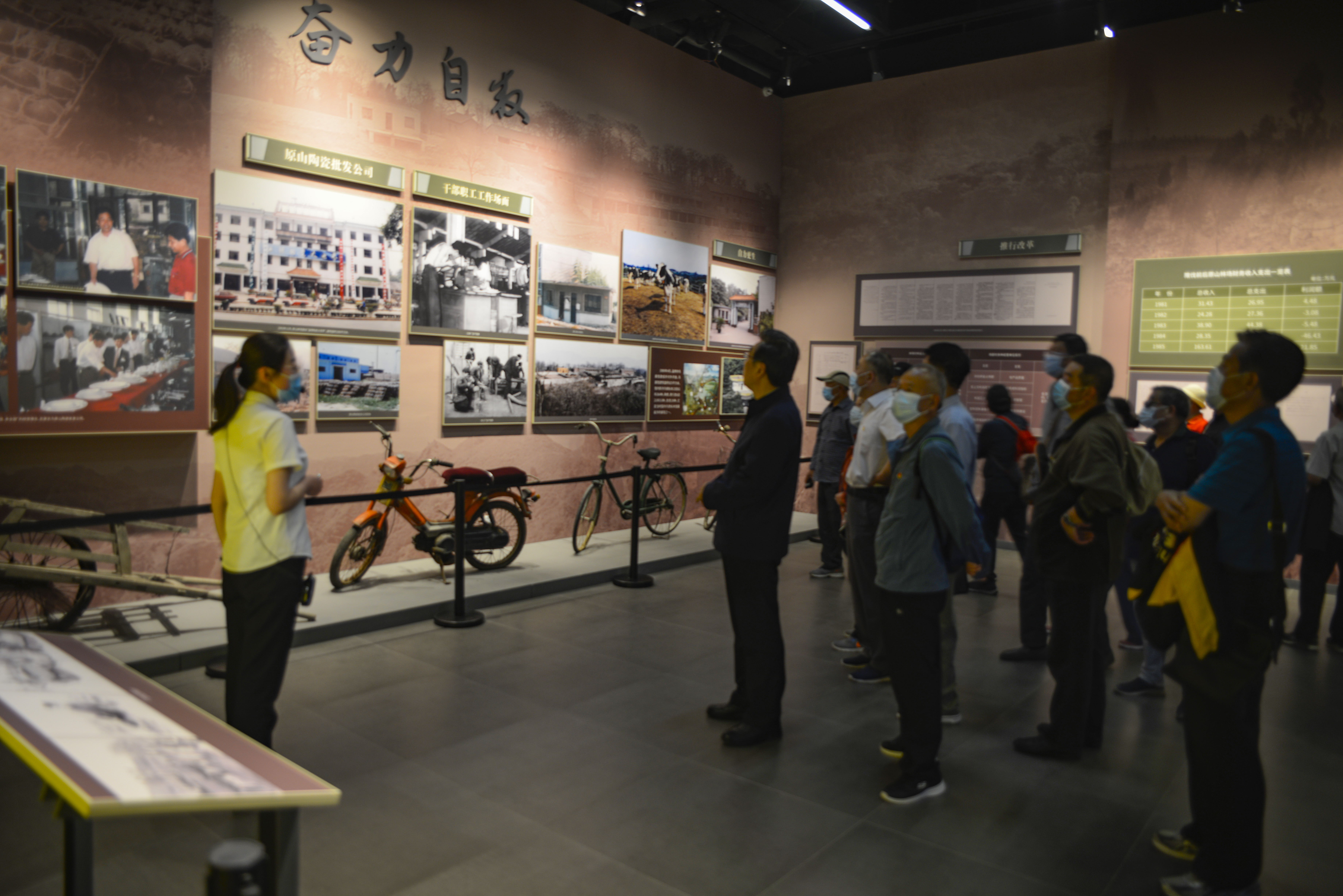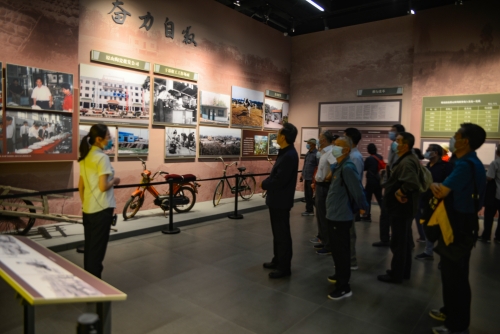 在原山林场艰苦创业纪念馆,老同志们深入了解原山林场自立更生、艰苦奋斗的发展历史和感人事迹。原山林场1957年创立以来,60多年间造林5万余亩,森林覆盖率从不足2%发展到94.4%,使一座座荒山野岭披上绿装。原山林场的发展,生动诠释了绿水青山就是金山银山的理念。