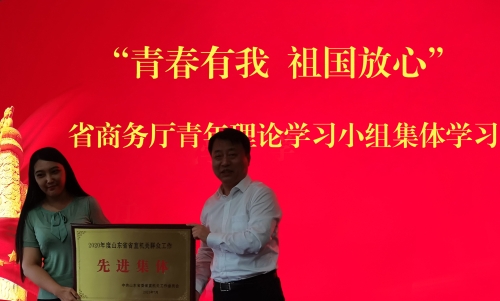 厅党组成员、副厅长张义英同志为厅团委颁发“群团工作先进集体”奖牌,同时结合深入学习习近平总书记“七一”重要讲话精神的体会和感悟,与青年干部进行了进行了交流,鼓励大家培养志存高远的大气、才华横溢的才气、光明磊落的正气、敢想敢做的锐气、淡泊名利的雅气。青年干部们表示,要牢牢把握习近平总书记“七一”重要讲话中“九个必须”经验启示和根本要求,努力工作为全省商务事业的发展贡献自己的力量。厅机关各处室、驻济直属单位青年同志参加会议。