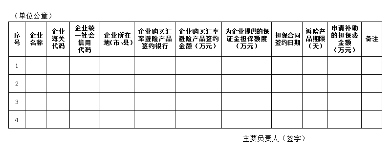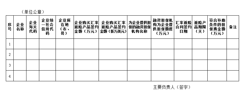 附表: 1.XX融资担保公司汇率避险担保费补助申请汇总表
