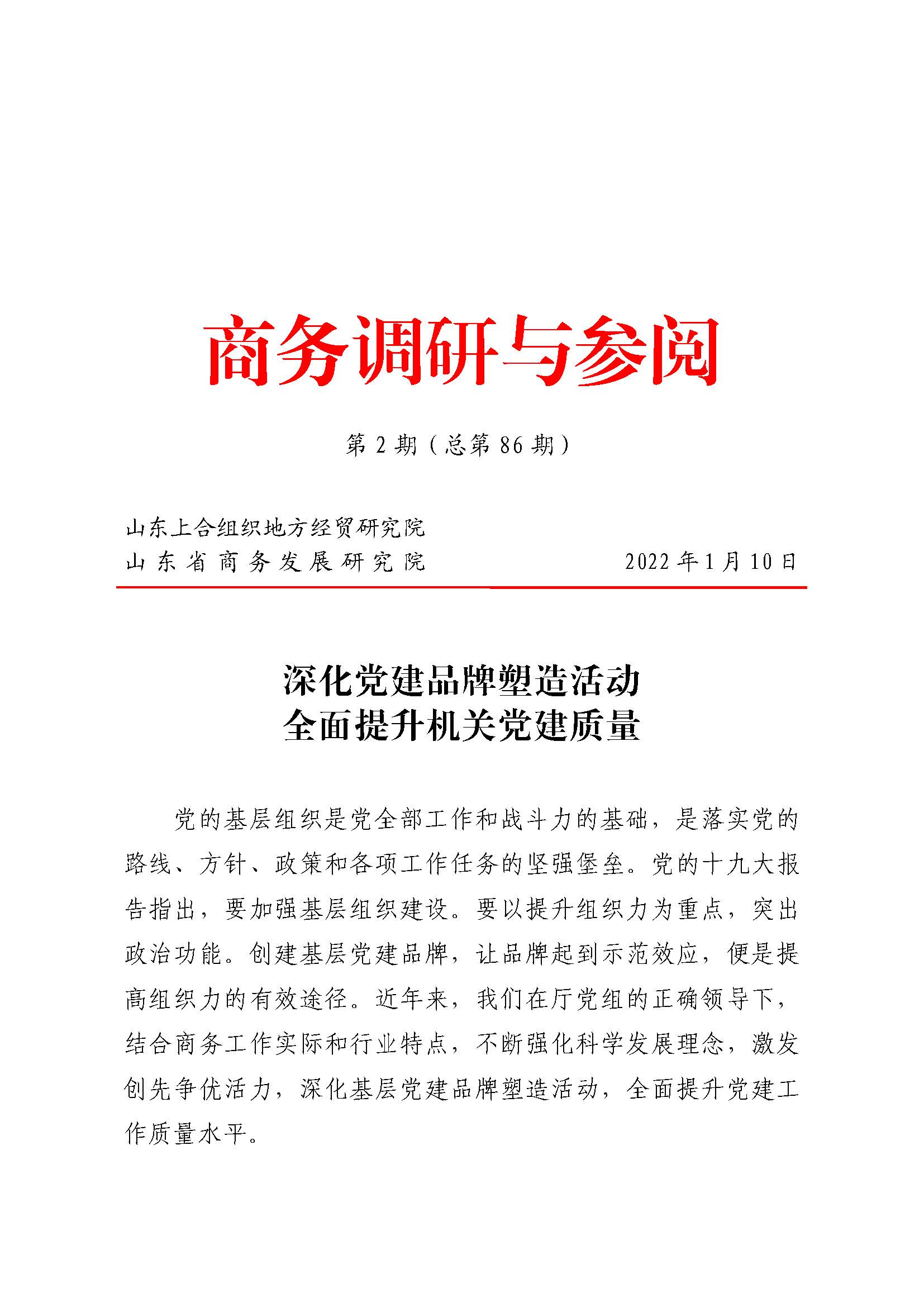 商务调研与参阅 2022年第2期(总第86期)深化党建品牌塑造活动 全面提升机关党建质量