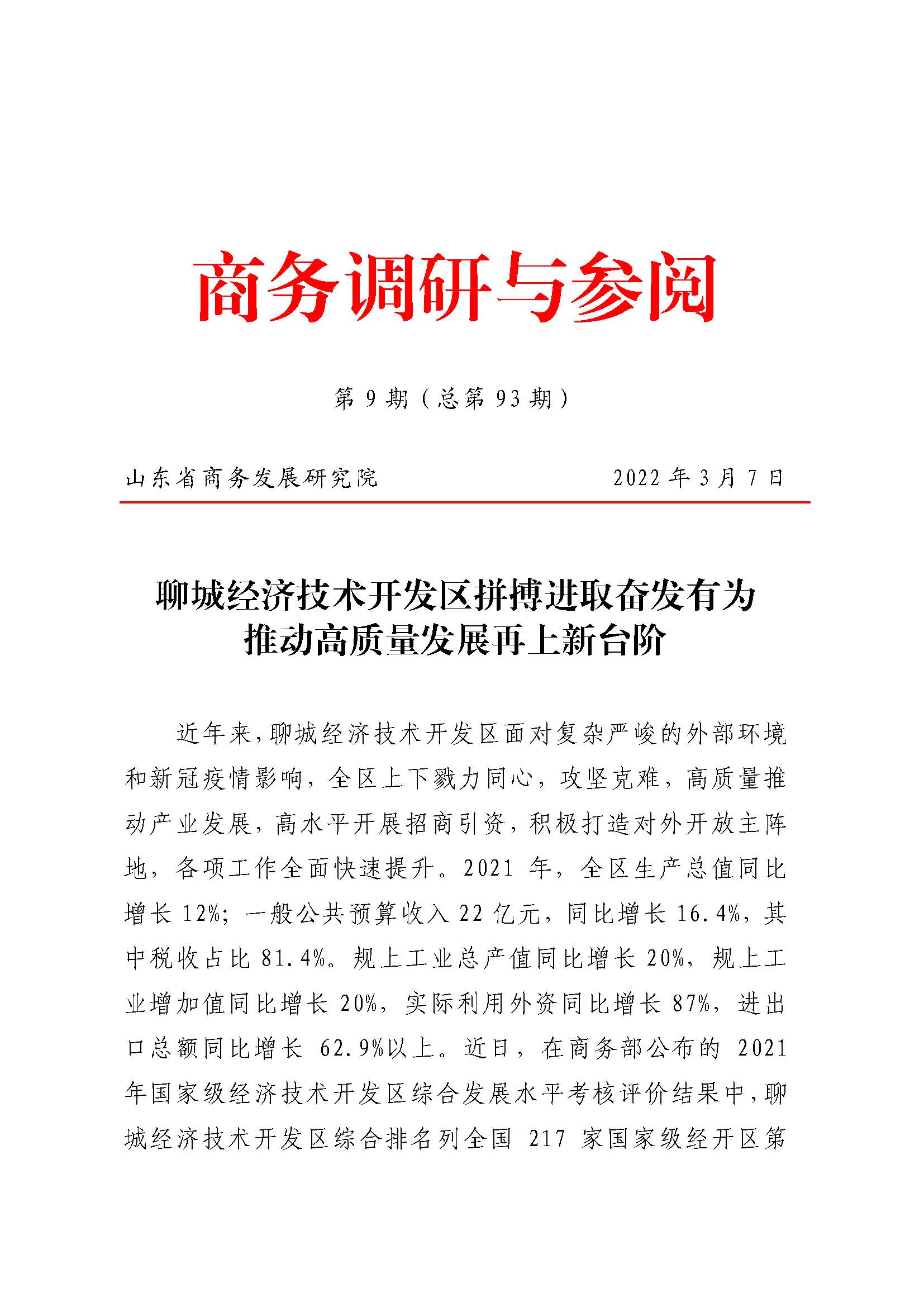 商务调研与参阅 2022年第9期(总第93期)聊城经济技术开发区拼搏进取 奋发有为推动高质量发展再上新台阶-