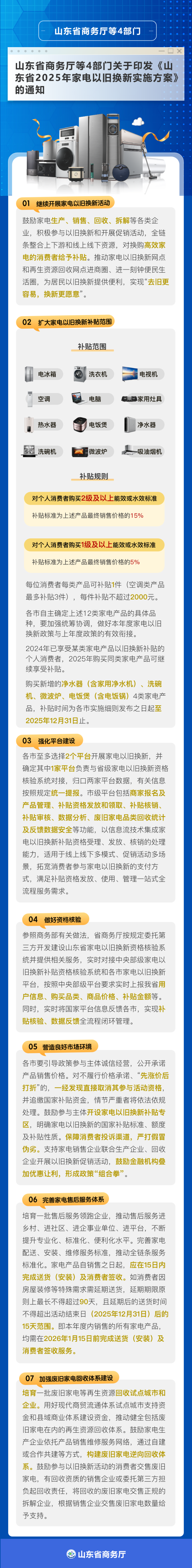 政策文件:山东省商务厅等4部门关于印发《山东省2025年家电以旧换新实施方案》的通知