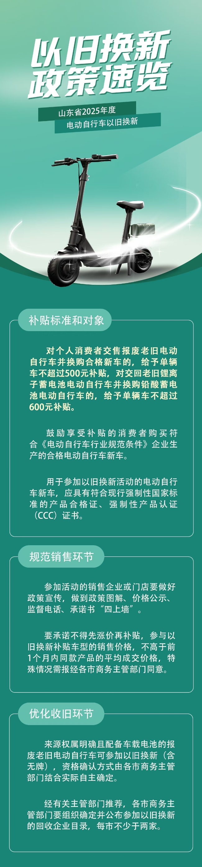 【一图读懂】山东省商务厅等5部门关于做好2025年度电动自行车以旧换新工作的通知