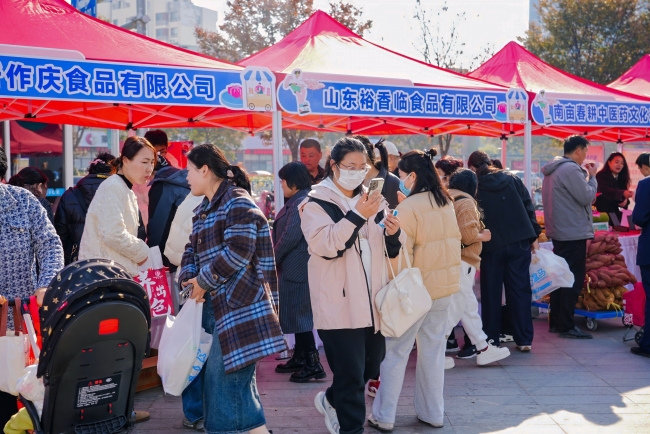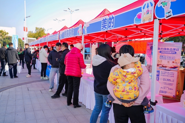 政企银三方共同构建消费赋能矩阵。河东吾悦广场副总经理闫晓飞发布了广场整体促销规划,明确卖场众多品牌折价与暖冬专属满减活动;银联商务临沂分公司市场部总经理刘宁详解了银联消费券投放计划与金融服务,包括“云闪付”领券流程、信用卡分期免息等便民举措。室外广场设置的消费品换新展区、优质农特产品展区、金融服务区,集中展示家电3C新品、非遗手工艺品及各类促消费金融产品;在免费品鉴区,沂蒙炒鸡、六姐妹煎饼等特色美食试吃活动,让市民在逛展中感受舌尖上的琅琊风情。