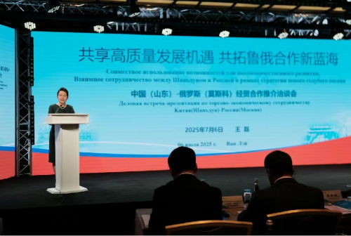 7月6日,中国(山东)-俄罗斯(莫斯科)经贸合作推介交流会在莫斯科举办。会上,中-俄功能材料与绿色能源联合实验室、山东高速齐鲁号欧亚班列运营有限公司俄罗斯分公司正式揭牌成立。双方参会企业围绕经贸、科技、物流、能源等领域开展对接洽谈,达成多项合作意向。