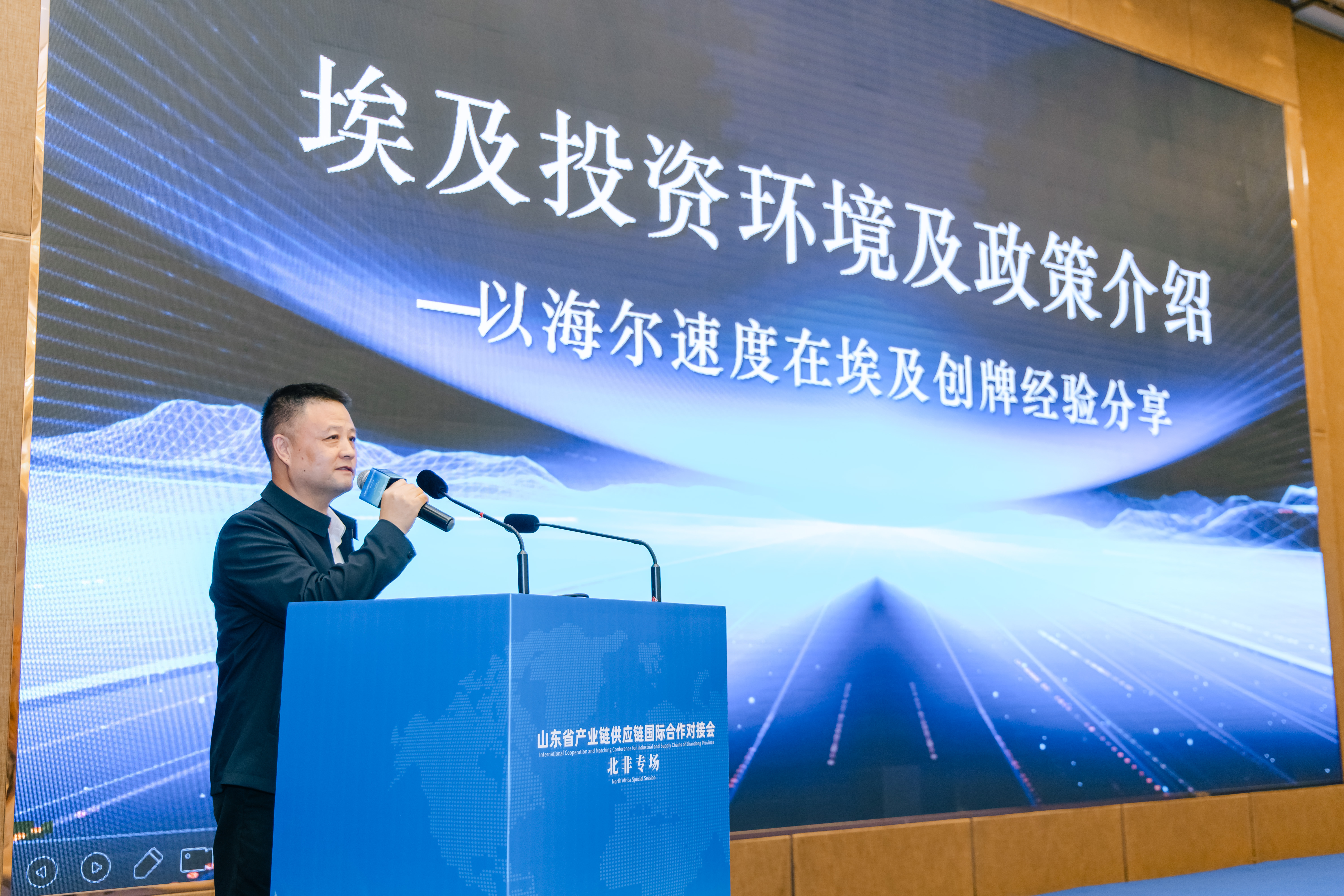 对接会特邀埃及投资和自由区总局秘书长(首席执行官)尤瑟夫围绕埃及贸易投资环境、政策和合作机遇进行介绍,肯定了山东企业为埃及经济社会发展做出的贡献,并诚挚欢迎山东企业赴埃及投资兴业。埃及中国商会副会长深入解读了埃及贸易投资政策。中国驻外使馆代表分别介绍了厄立特里亚及北非地区投资环境和发展机遇。此外,中非泰达投资股份有限公司和海尔海外电器产业有限公司分享在非重点项目合作的成功经验,为企业开拓北非市场提供实践参考。