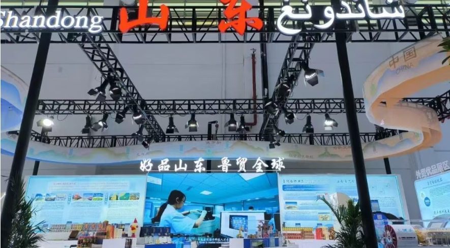 山东省商务厅搭建了144平方米的特装形象展示区,以“开放的山东、鲁阿合作共赢、上合示范引领、鲁贸全球优品”等四个专题全面展示山东对外开放成效,组织了浪潮集团、济南重工集团、临沂临工集团等30家企业的110余种产品参展,覆盖智能科技、工程机械、建材、服装、餐具、文创产品、特色食品等 7 大类别,来自济南重工集团的直径17.5米“山河号”超大直径盾构机、济南塞尔无人机科技公司工业级测绘无人机、青岛瑞泰尔电子技术公司水下机器人等产品受到广泛关注,充分展示了山东好品和装备制造水平。
