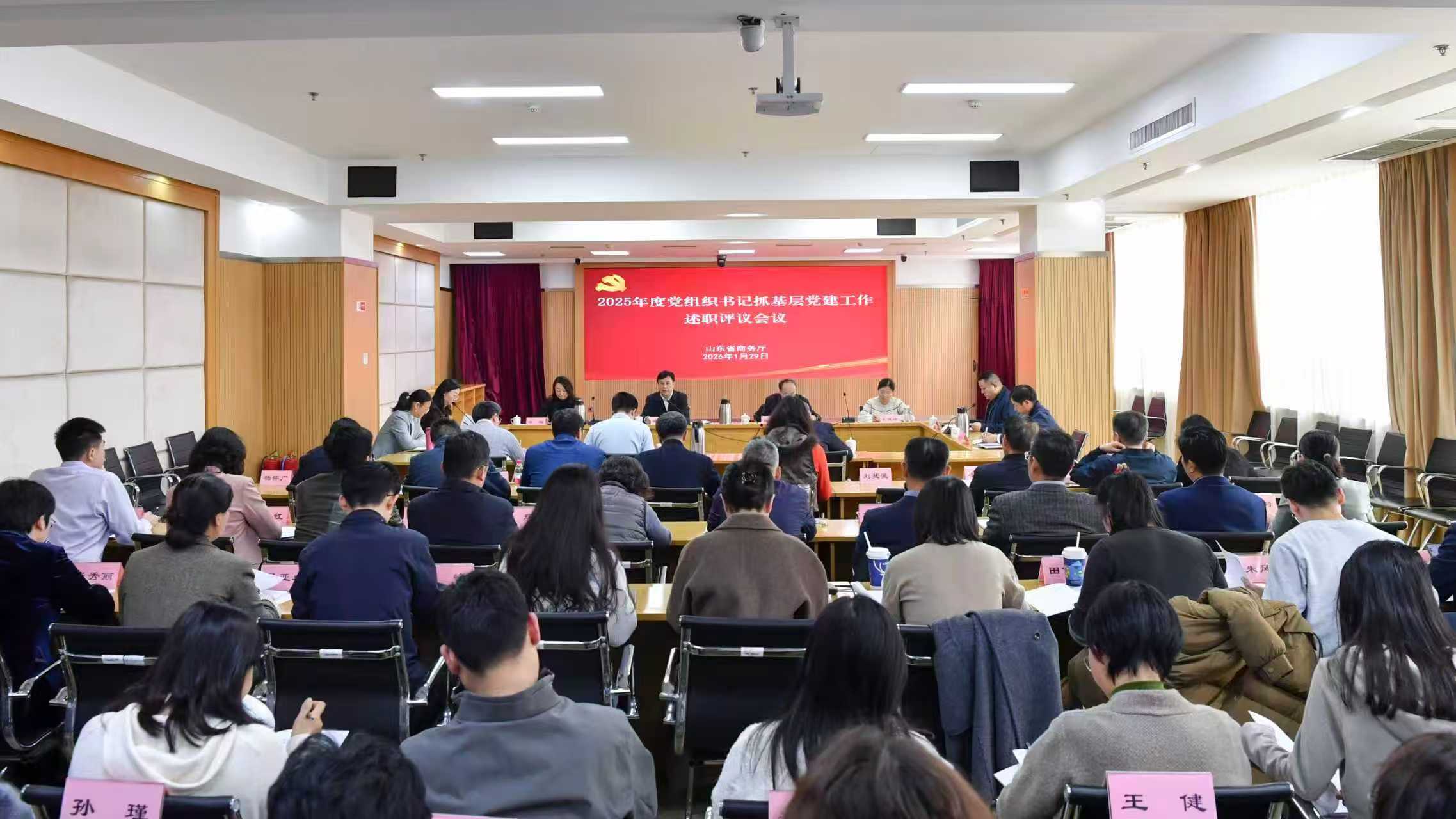 1月29日,省商务厅召开2025年度党组织书记抓基层党建工作述职评议会。厅党组成员、副厅长崔洪光主持会议并讲话。会上,7名基层党组织书记分别作述职发言,其他基层党组织书记进行书面述职。崔洪光同志对现场述职的基层党组织书记逐一进行点评,指出存在的问题与不足,同时通报了2025年度机关党的建设工作情况。